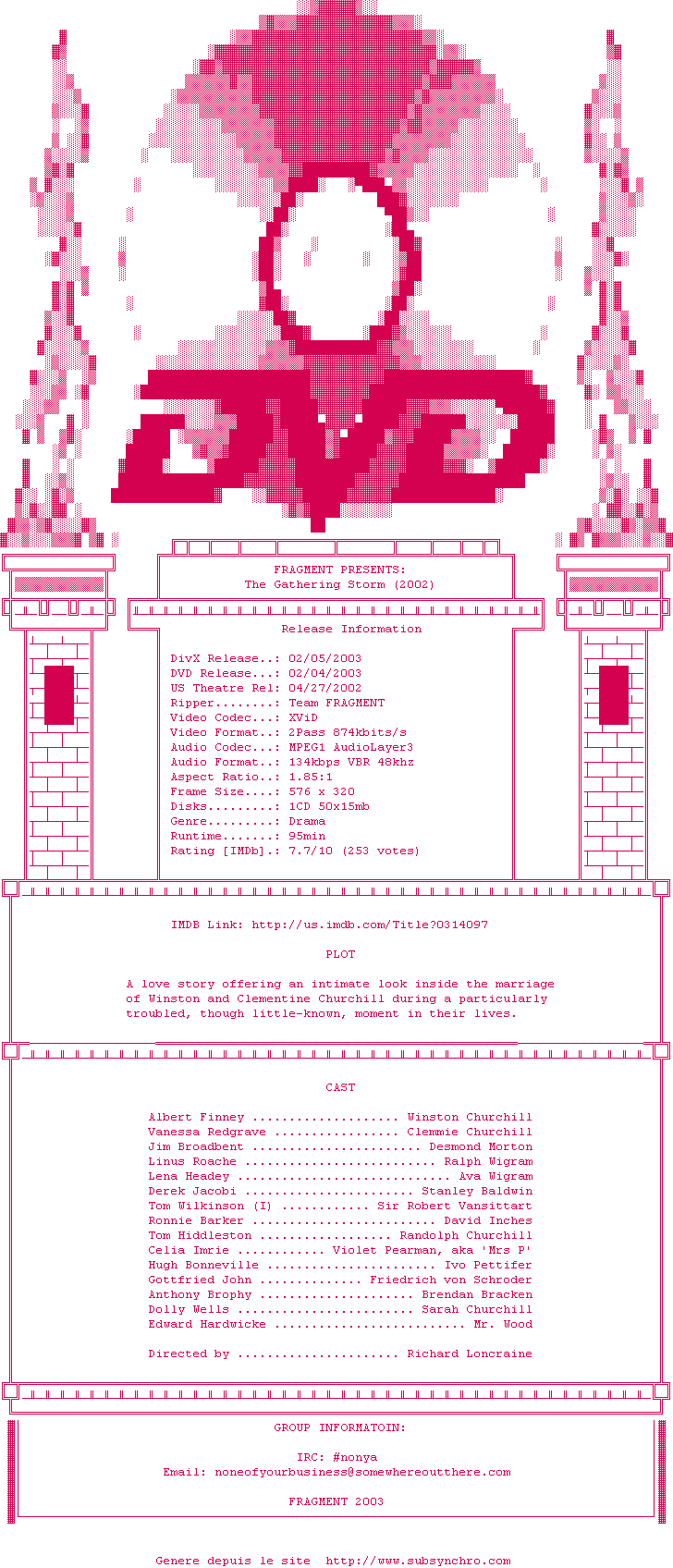 Voir le nfo de la release The.Gathering.Storm.2002.DVDRip.XviD-FRAGMENT