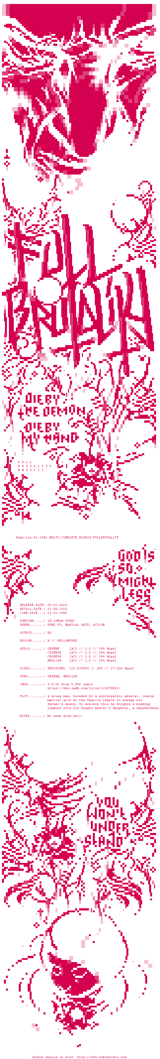 Voir le nfo de la release Shao.Lin.Si.1982.MULTI.COMPLETE.BLURAY-FULLBRUTALiTY