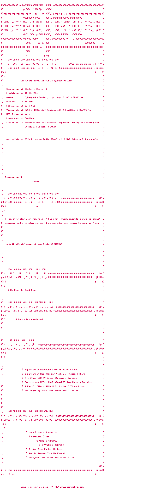Voir le nfo de la release Dark.City.1998.1080p.BluRay.H264-FaiLED