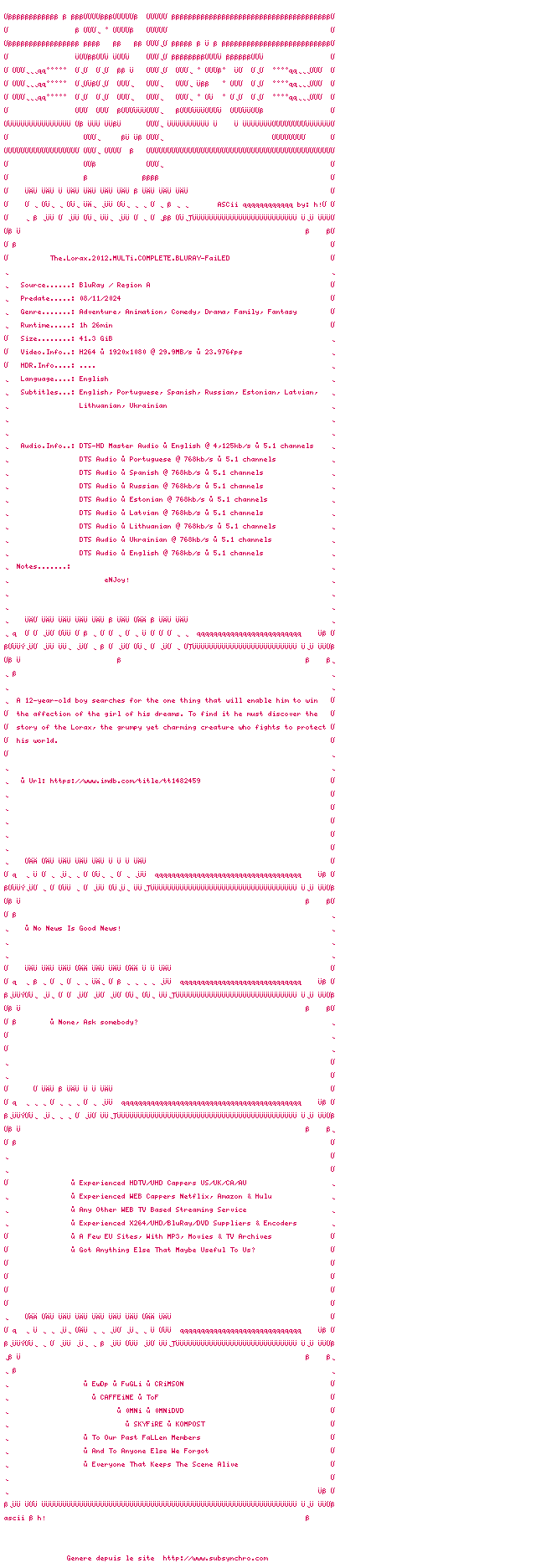 Voir le nfo de la release The.Lorax.2012.MULTi.COMPLETE.BLURAY-FaiLED