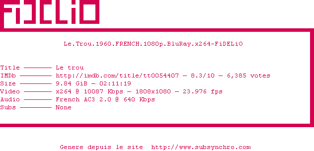 Voir le nfo de la release Le.Silence.De.La.Mer.1949.FRENCH.1080p.BluRay.x264-FiDELiO