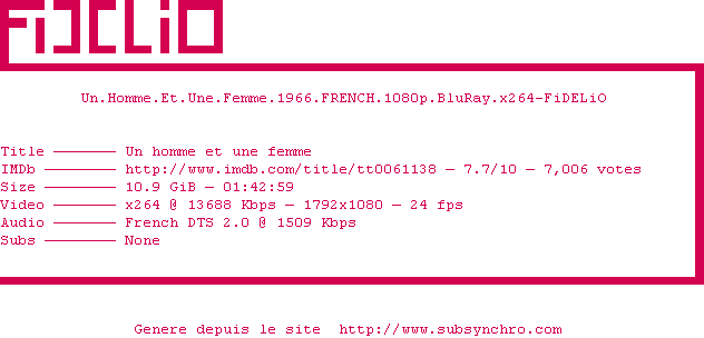 Voir le nfo de la release Il.Y.A.Des.Jours.Et.Des.Lunes.1990.FRENCH.1080p.BluRay.x264-FiDELiO