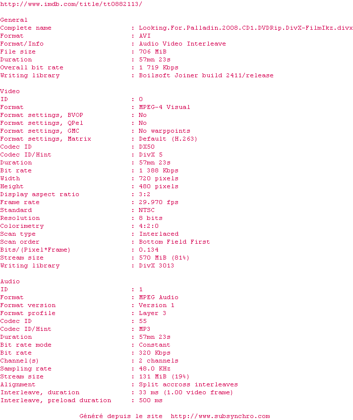 Voir le nfo de la release Looking.For.Palladin.2008.DVDRip.DivX-FilmIkz