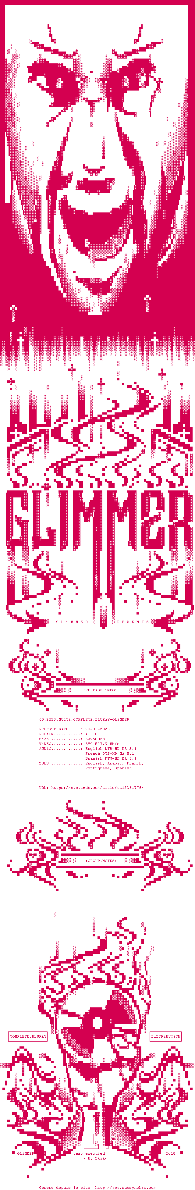 Voir le nfo de la release 65.2023.MULTi.COMPLETE.UHD.BLURAY-GLiMMER