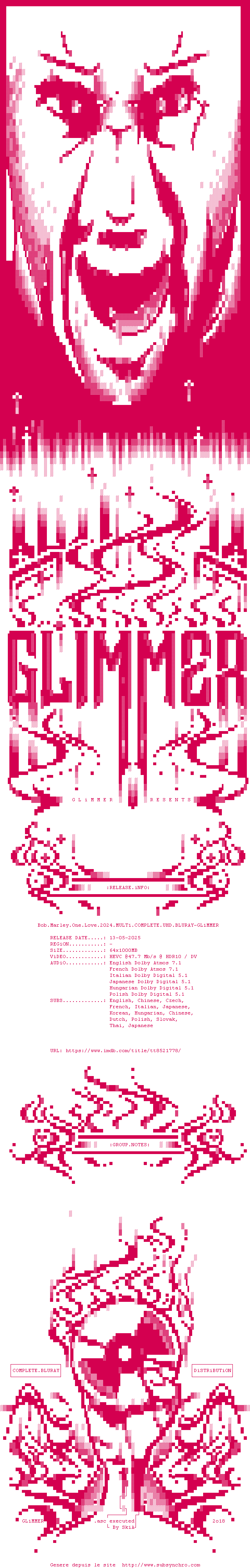 Voir le nfo de la release Bob.Marley.One.Love.2024.MULTi.COMPLETE.UHD.BLURAY-GLiMMER