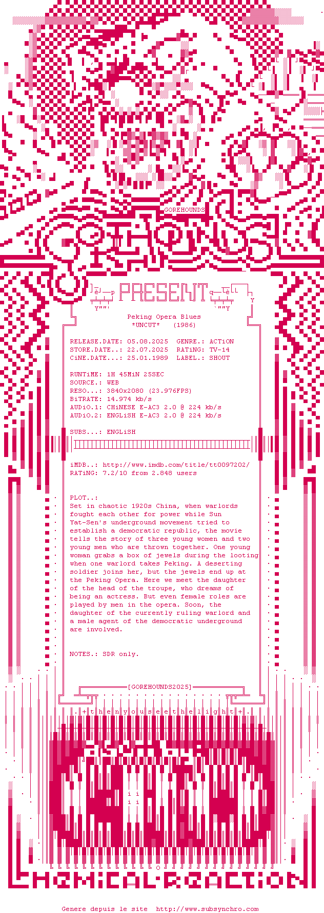 Voir le nfo de la release Peking.Opera.Blues.1986.2160P.WEB.H265-GOREHOUNDS