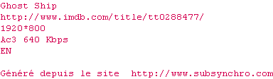 Voir le nfo de la release Ghost.Ship.2002.1080p.BluRay.x264-HDCLASSiCS