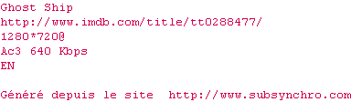 Voir le nfo de la release Ghost.Ship.2002.720p.BluRay.x264-HDCLASSiCS