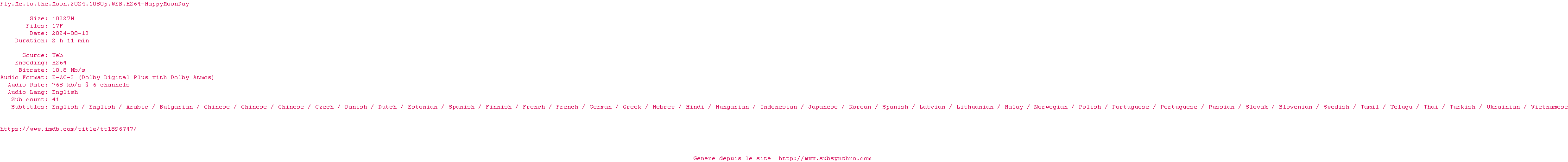 Voir le nfo de la release Fly.Me.To.The.Moon.2024.2160p.WEB.H265-HappyMoonDay