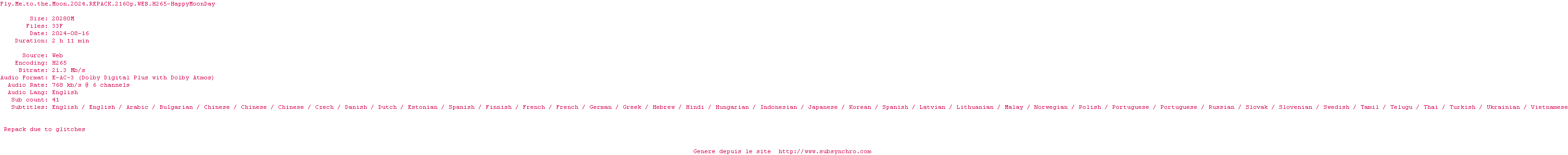 Voir le nfo de la release Fly.Me.To.The.Moon.2024.REPACK.2160p.WEB.H265-HappyMoonDay