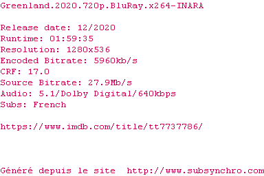 Voir le nfo de la release Greenland.2020.BDRip.x264-INARA