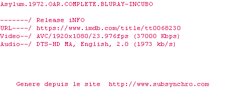 Voir le nfo de la release The.Castle.Of.Fu.Manchu.1969.COMPLETE.BLURAY-INCUBO
