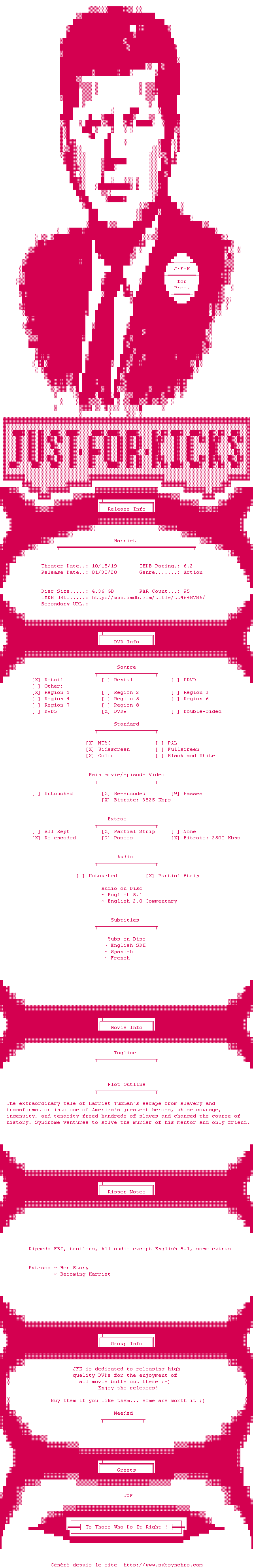 Voir le nfo de la release Harriet.2019.DVDR-JFKDVD