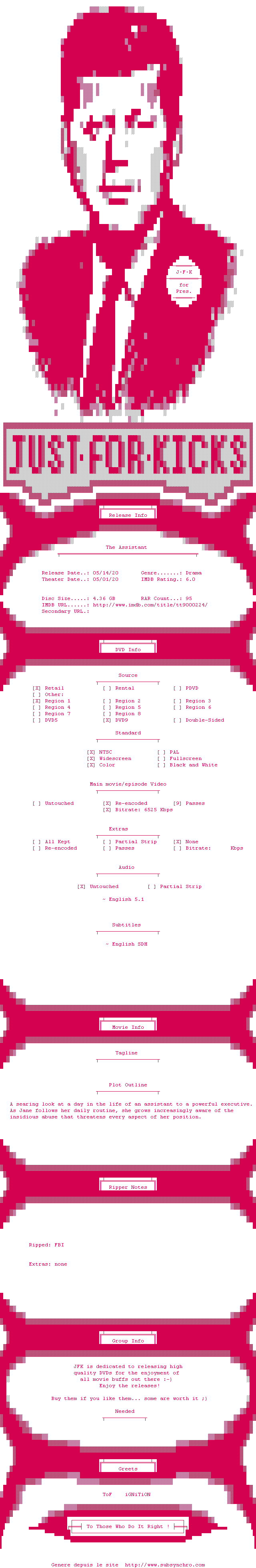 Voir le nfo de la release The.Assistant.2019.DVDR-JFKDVD