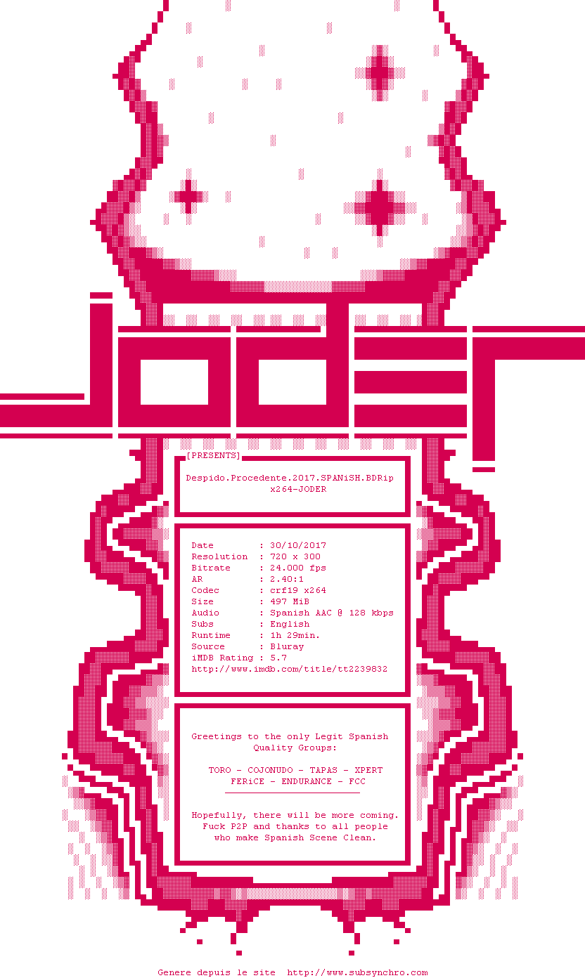 Voir le nfo de la release Despido.Procedente.2017.SPANiSH.BDRip.x264-JODER