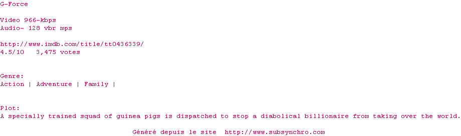 Voir le nfo de la release G-Force.DVDRip.XviD-JUMANJi
