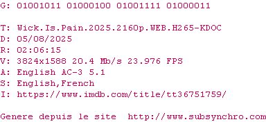Voir le nfo de la release Wick.Is.Pain.2025.2160p.WEB.H265-KDOC