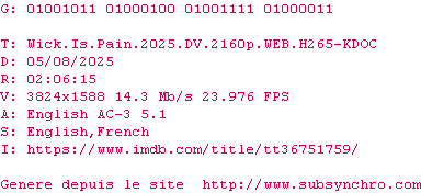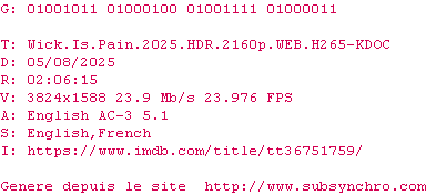 Voir le nfo de la release Wick.Is.Pain.2025.HDR.2160p.WEB.H265-KDOC