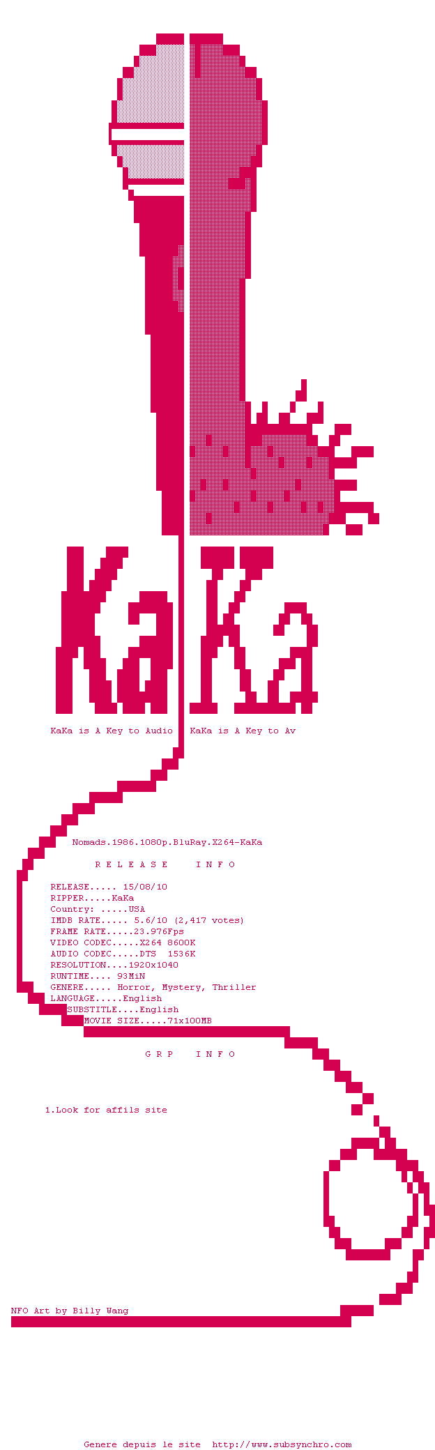 Voir le nfo de la release Meteor.1979.1080p.BluRay.X264-KaKa