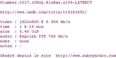 Voir le nfo de la release Slumber.2017.1080p.BluRay.x264-LATENCY