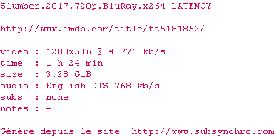 Voir le nfo de la release Slumber.2017.720p.BluRay.x264-LATENCY
