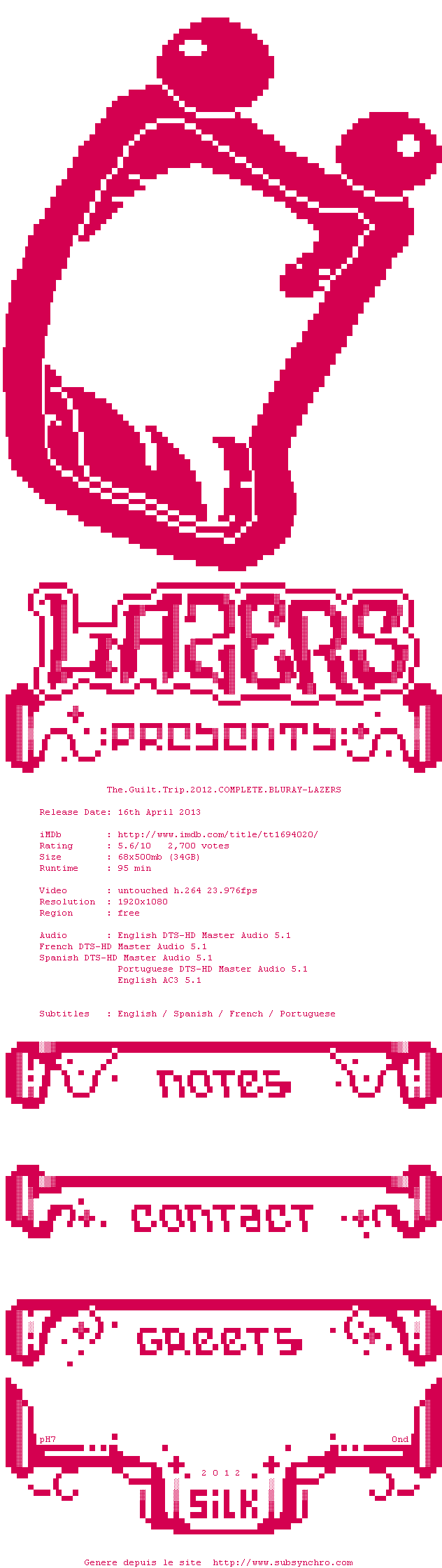 Voir le nfo de la release The.Guilt.Trip.2012.COMPLETE.BLURAY-LAZERS