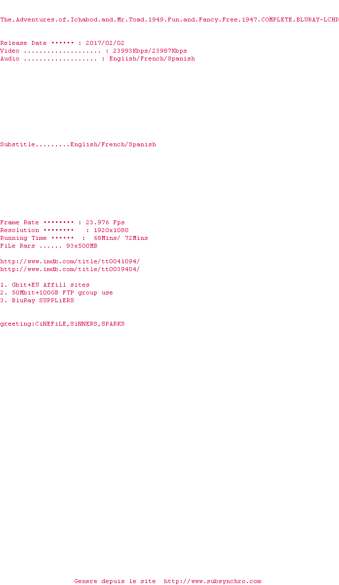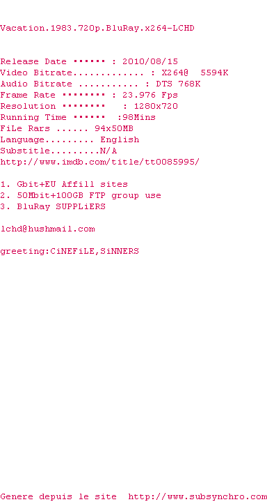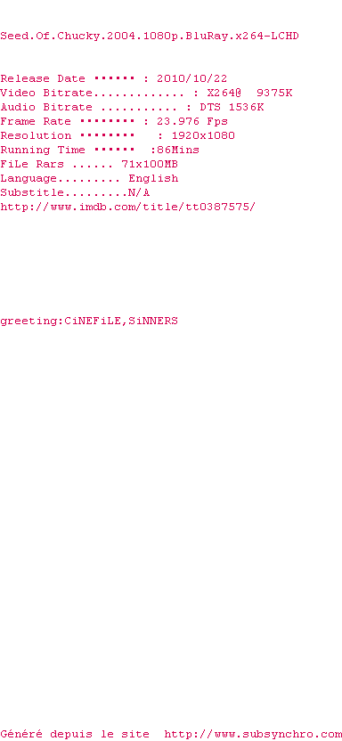 Voir le nfo de la release Seed.Of.Chucky.2004.1080p.BluRay.x264-LCHD