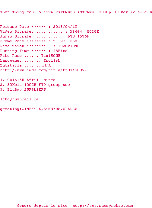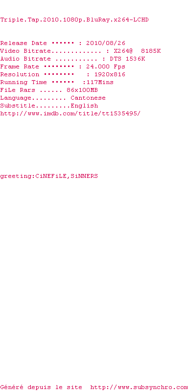Voir le nfo de la release Triple.Tap.2010.1080p.BluRay.x264-LCHD