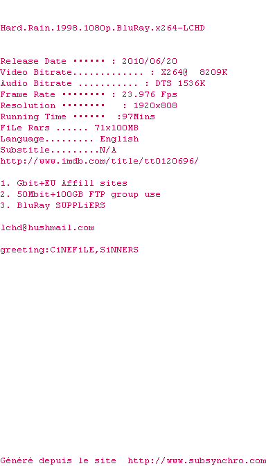 Voir le nfo de la release Hard.Rain.1998.1080p.BluRay.x264-LCHD