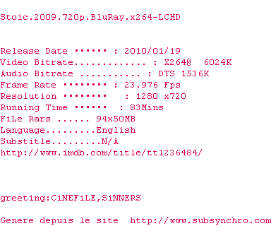 Voir le nfo de la release Thirst.2009.1080p.BluRay.x264-LCHD