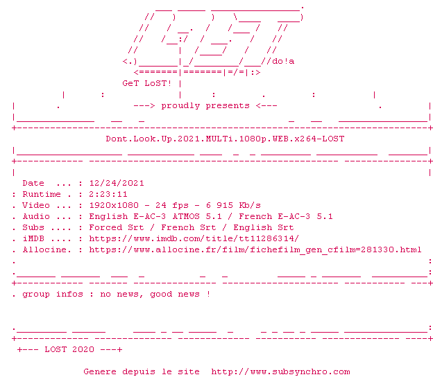Voir le nfo de la release Soudain.Seuls.2023.FRENCH.1080p.WEB.H264-LOST