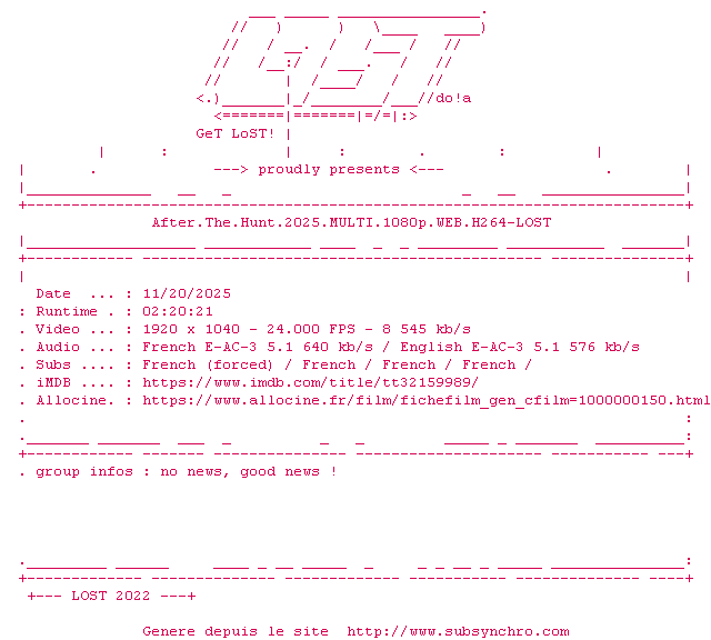 Voir le nfo de la release One.Battle.After.Another.2025.MULTI.1080p.WEB.H264-LOST