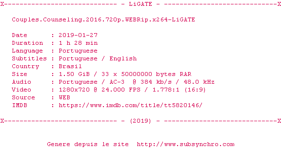 Voir le nfo de la release Couples.Counseling.2016.720p.WEBRip.x264-LiGATE