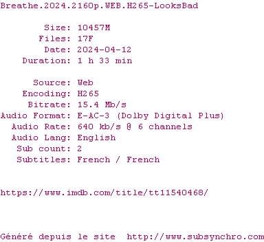 Voir le nfo de la release Breathe.2024.2160p.WEB.H265-LooksBad