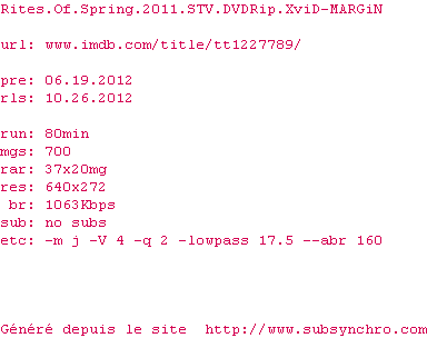 Voir le nfo de la release Rites.Of.Spring.2011.STV.DVDRip.XviD-MARGiN
