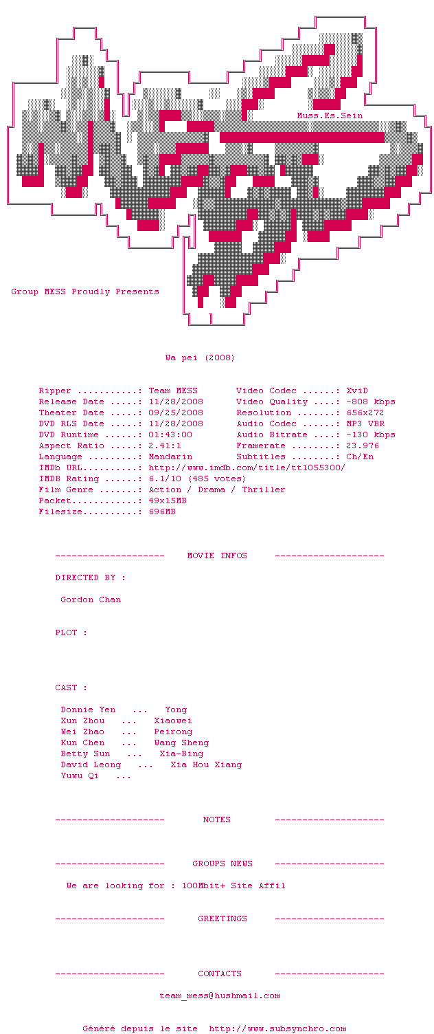 Voir le nfo de la release Painted.Skin.2008.DVDRip.XviD-MESS