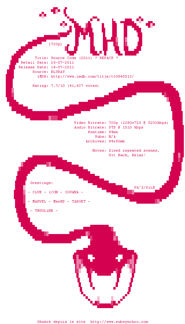 Voir le nfo de la release Source.Code.REPACK.720p.Bluray.x264-MHD