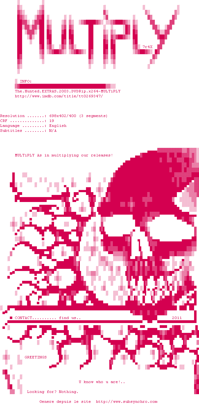 Voir le nfo de la release The.Last.Mimzy.2007.iNTERNAL.DVDRip.XViD-MULTiPLY