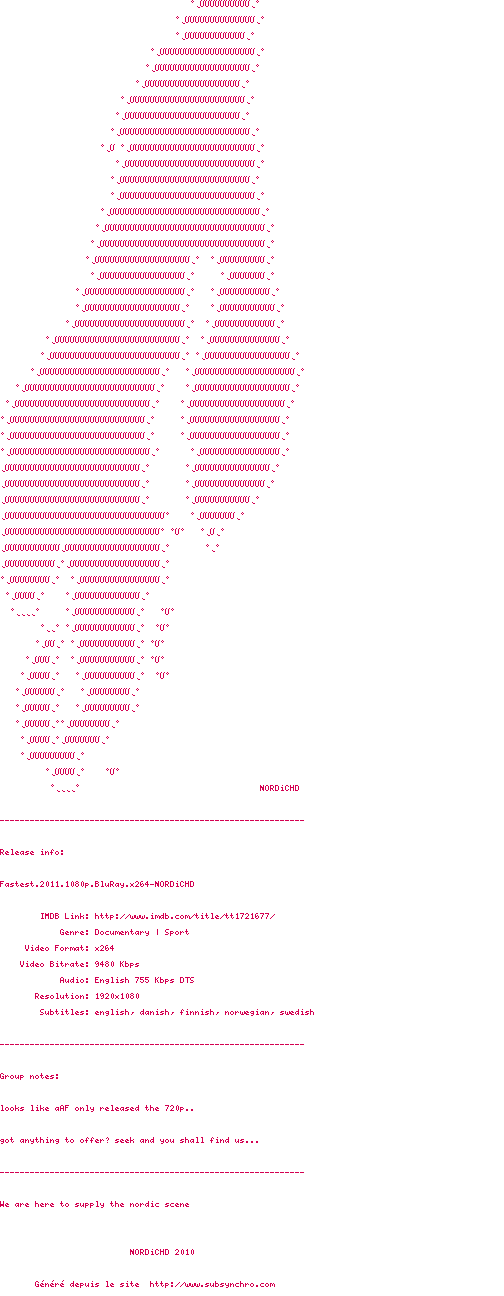 Voir le nfo de la release Fastest.2011.1080p.BluRay.x264-NORDiCHD