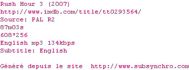 Voir le nfo de la release Rush.Hour.3.DVDRip.XviD-NeDiVx