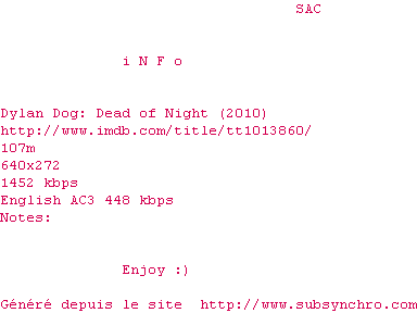 Voir le nfo de la release Dylan.Dog.Dead.of.Night.DiRFiX.BDRip.XviD-NeDiVx