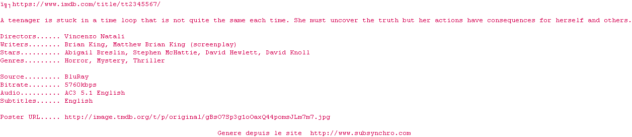 Voir le nfo de la release Blood.Work.2002.1080p.BluRay.x264-OFT