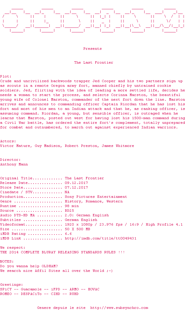 Voir le nfo de la release Shane.1953.COMPLETE.BLURAY-OLDHAM