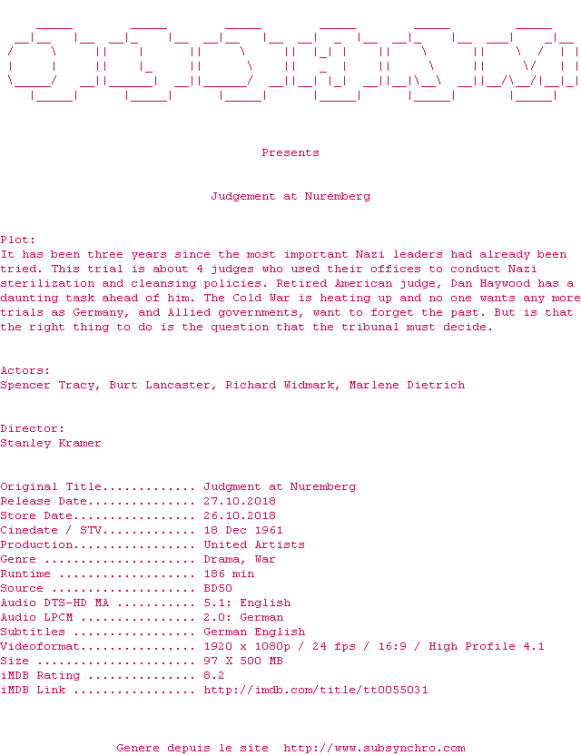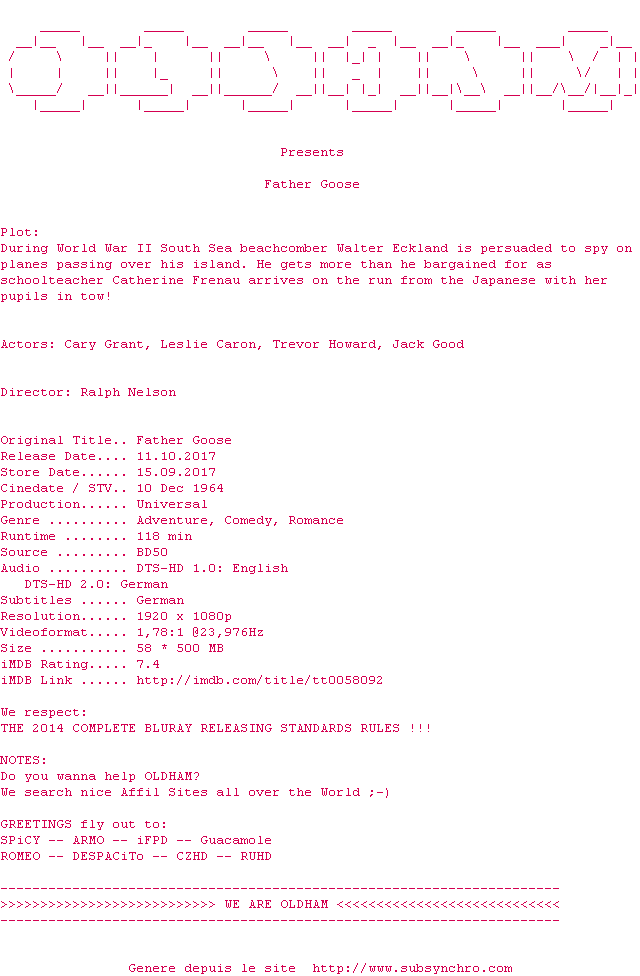Voir le nfo de la release The.Hangman.1959.MULTi.COMPLETE.BLURAY-OLDHAM