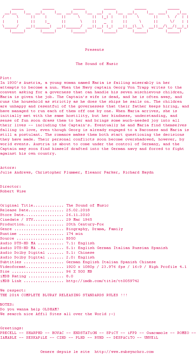 Voir le nfo de la release The.Sound.Of.Music.1965.MULTi.COMPLETE.BLURAY-OLDHAM