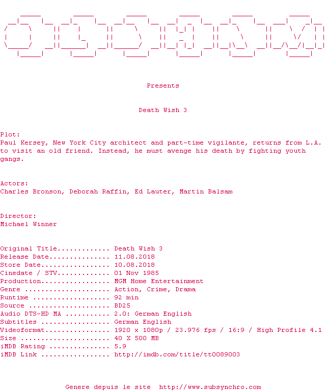 Voir le nfo de la release Deathstalker.1983.MULTi.COMPLETE.BLURAY-OLDHAM