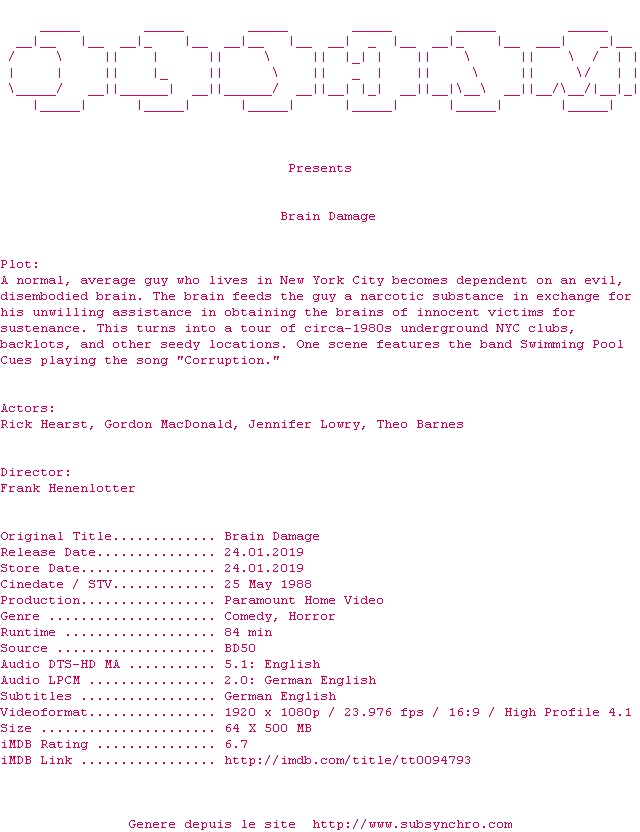 Voir le nfo de la release Vicious.Lips.1986.MULTi.COMPLETE.BLURAY-OLDHAM