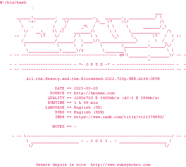 Voir le nfo de la release All.The.Beauty.And.The.Bloodshed.2022.720p.WEB.H264-OPUS