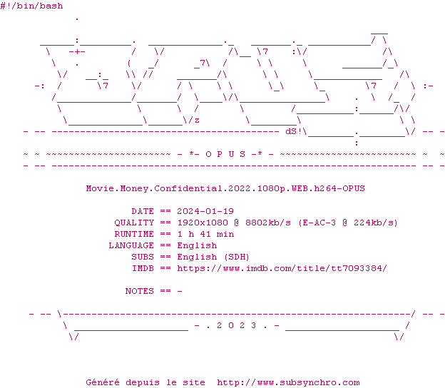 Voir le nfo de la release Movie.Money.Confidential.2022.1080p.WEB.H264-OPUS