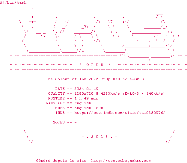 Voir le nfo de la release The.Colour.Of.Ink.2022.720p.WEB.H264-OPUS